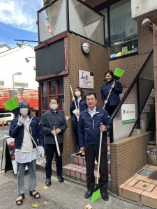 本日、社会貢献活動として事務所周辺を落ち葉掃除を致しました